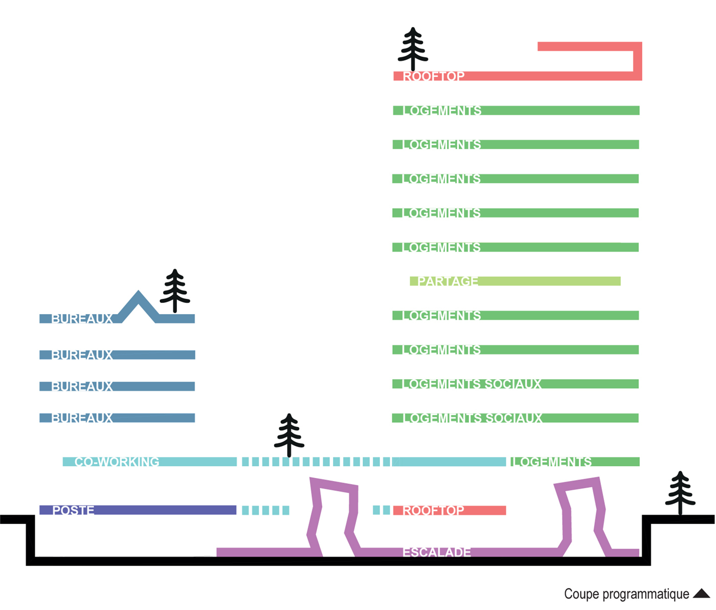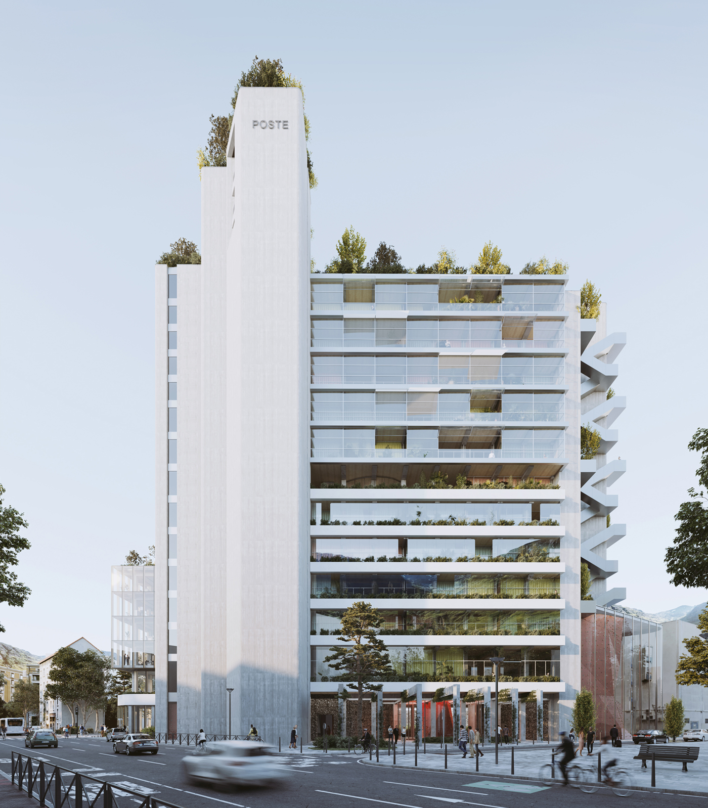 Programme : réhabilitation des locaux de la Poste et création de bureaux, de 100 logements, d’espaces de coworking, d’un rooftop et d’un espace de sport