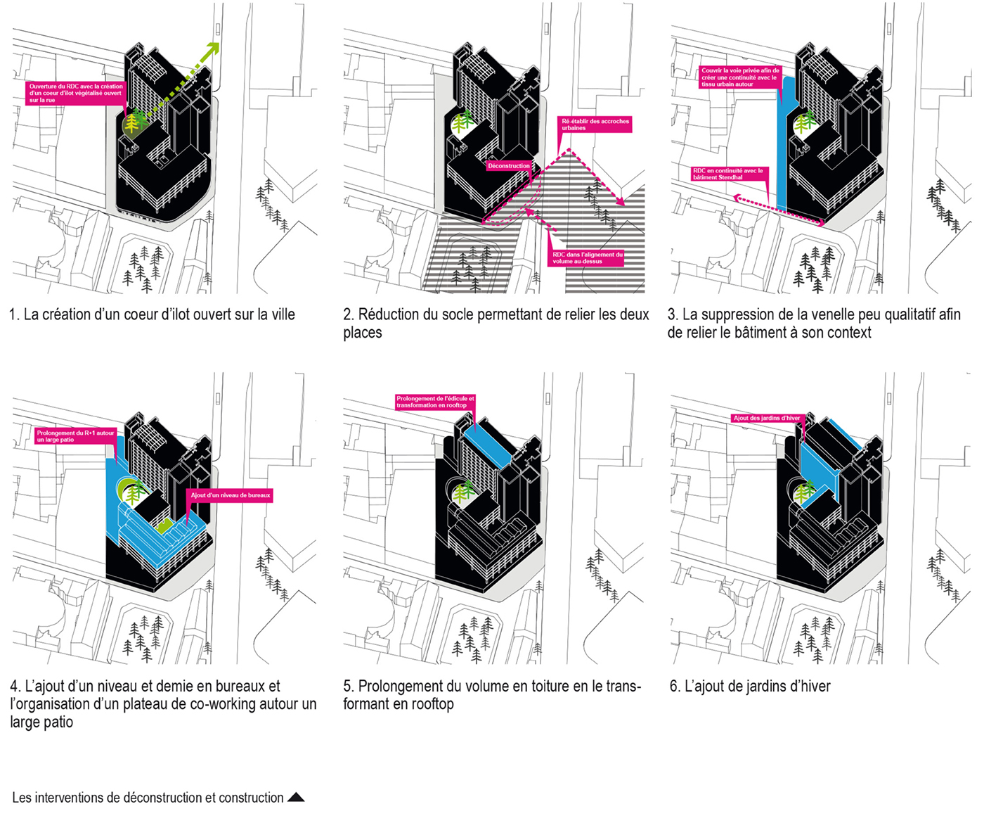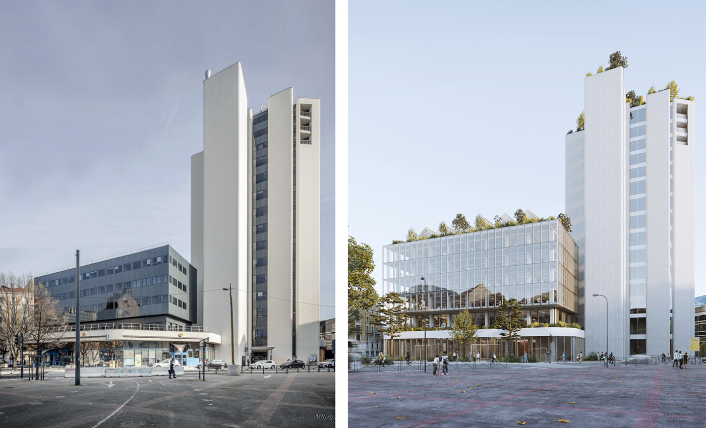 Équipe : Oteis (Structure, Fluides, AMO HQE) / Suez – Batirim (AMO Économie circulaire) / Ar-c (Façades) / Mugo (Paysagiste) / Ecomat38 (Ré-emploi) / Nat&Vie (Écoloque) / Maximum (Designer) / Resolving (BIM Manager)