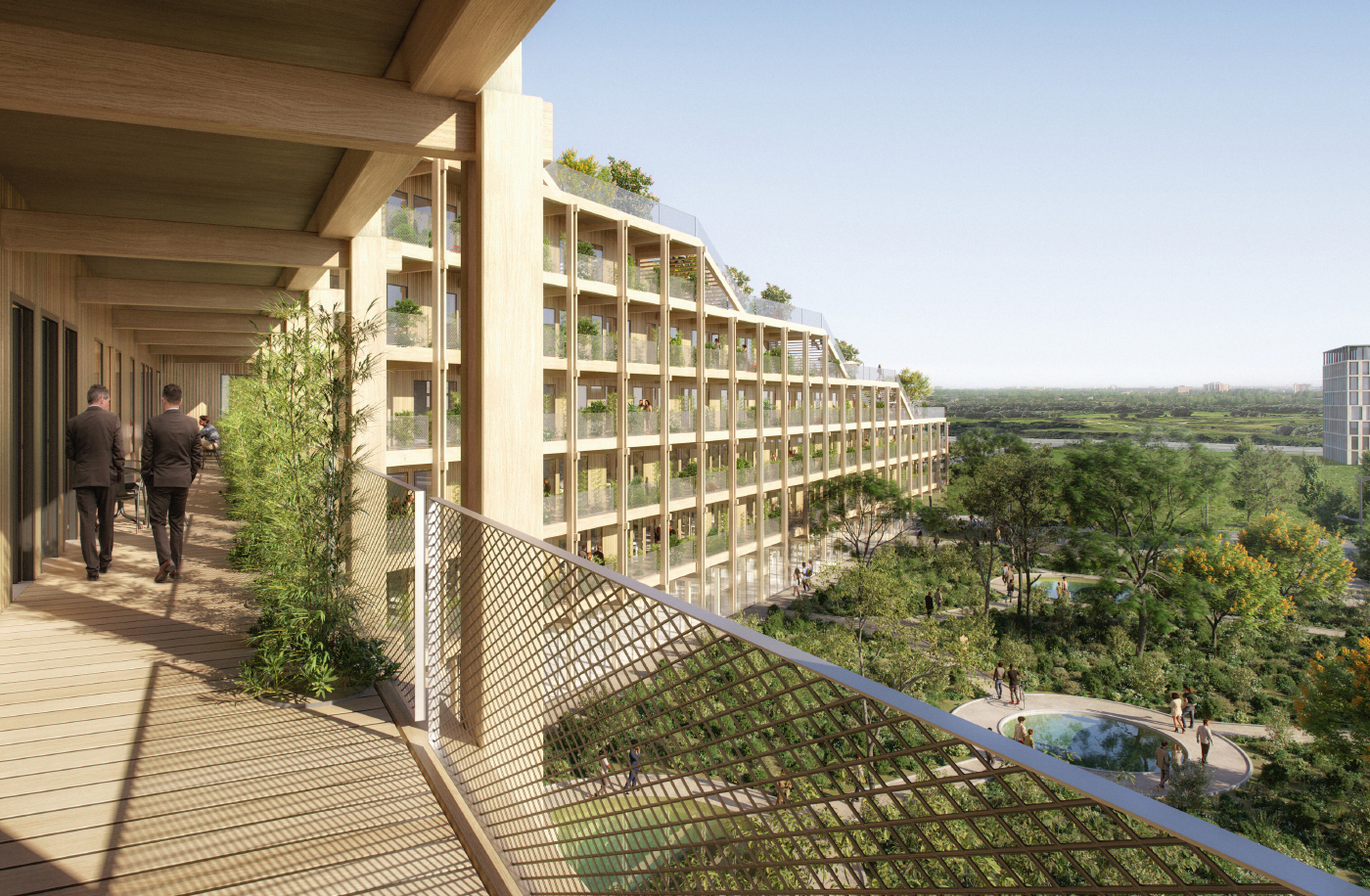 Équipe : Projex (Structure Béton, Fluides, Photovoltaïque, SSI, VRD, MOEX et OPC) / VP Green (Façades) / LTA (Economie) / Inex (HQE) / Sempervirens (Paysage) / Greenaffair (Smart Building R2S) / Diagobat label Biodivercity et Acoustique) / Probim (BIM)